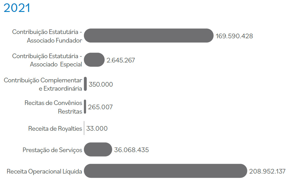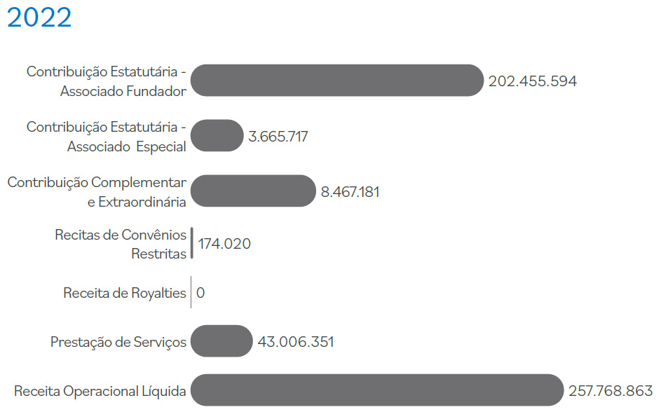 O montante referente às contribuições estatutárias dos associados Fundadores e Especiais, correspondeu, no ano de 2022, a 80% da Receita Operacional Líquida. Destacam-se as inclusões de dois novos Associados Especiais no quadro associativo: EPE e Norte Energia.